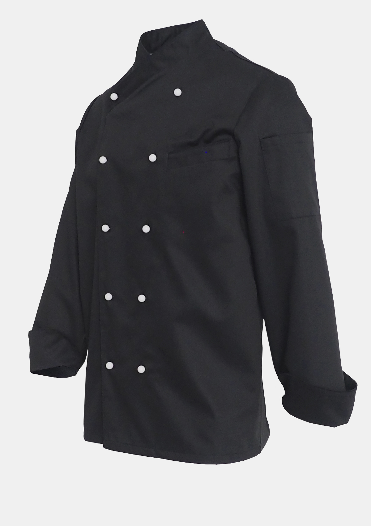 Kochjacke mit langgezogenen Stehkragen